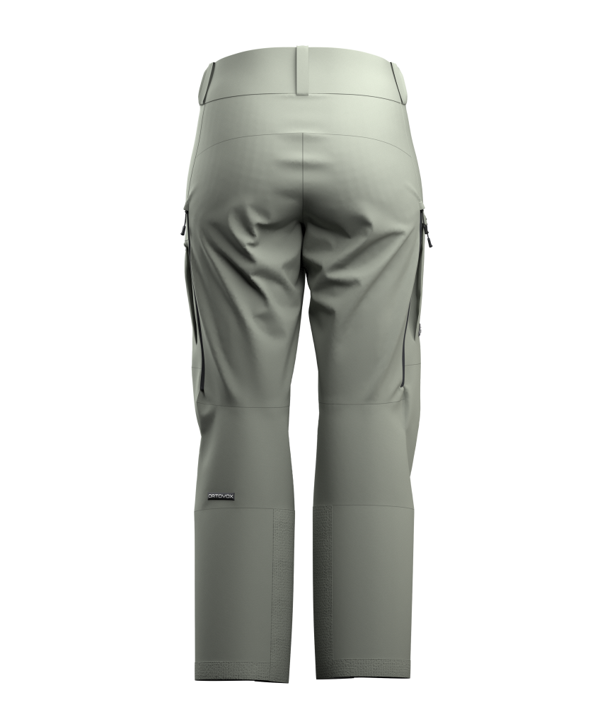 Nohavice ORTOVOX RAVINE FREE 3L PANTS W sú vyrobené z odolnej trojvrstvovej membrány. Zároveň majú voľný strih, tvarované kolená, čo umožňuje maximálnu voľnosť pohybu. V oblastiach náchylných na chlad (zadok) sa nachádza materiál RAVINE 3L MERINO s príjemnou podšívka z Merino vlny. Táto podšívka je veľmi príjemná, nelepí sa na pokožku, odvádza vlhkosť od tela, hreje aj keď je mokrá a poskytuje vysoký komfort a pocit sucha.