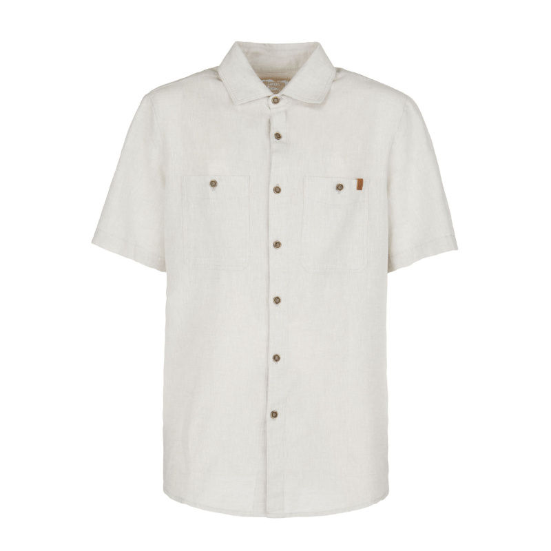 Pánská košile Kiwi od značky E9. Velmi pohodlná s antibakteriálním účinkem, díky kombinaci materiálů lnu a bavlny. Má dvě velké přední kapsy se zapínáním na knoflík. Na vnitřní straně límečku má navíc stylový potisk.