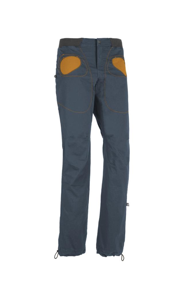 Moderné pánske nohavice RONDO STORY PANTS sú vyrobené zo strečovej gabardénovej tkaniny z 96% organickej bavlny a 4% elastanu. Nohavice majú elastický pás so zapínaním a nastaviteľný spodný lem nohavíc. Na oboch bokoch majú pútka na kefku. Vrecká sú v kontrastnom prevedení (vnútorná látka je v kontrastnej farbe) a na zadnom vrecku je vyšité logo E9. Sú vyrobené 100% v Taliansku s minimálnym znečistením životného prostredia as dôrazom na extravagantné prevedenie, unikátny dizajn a komfort pri lezení.