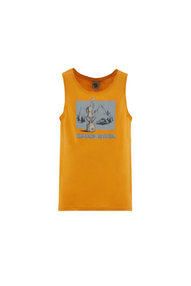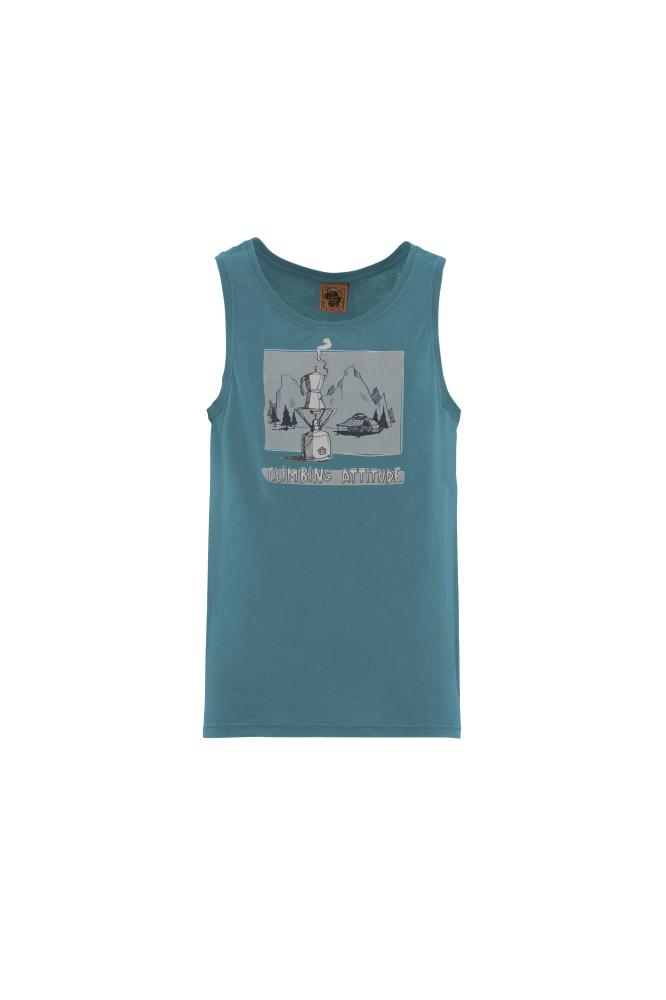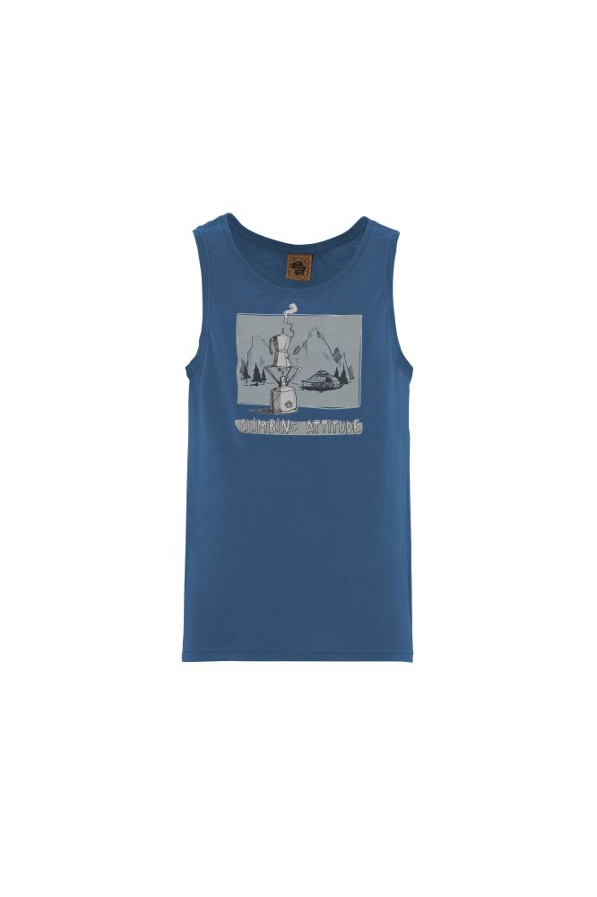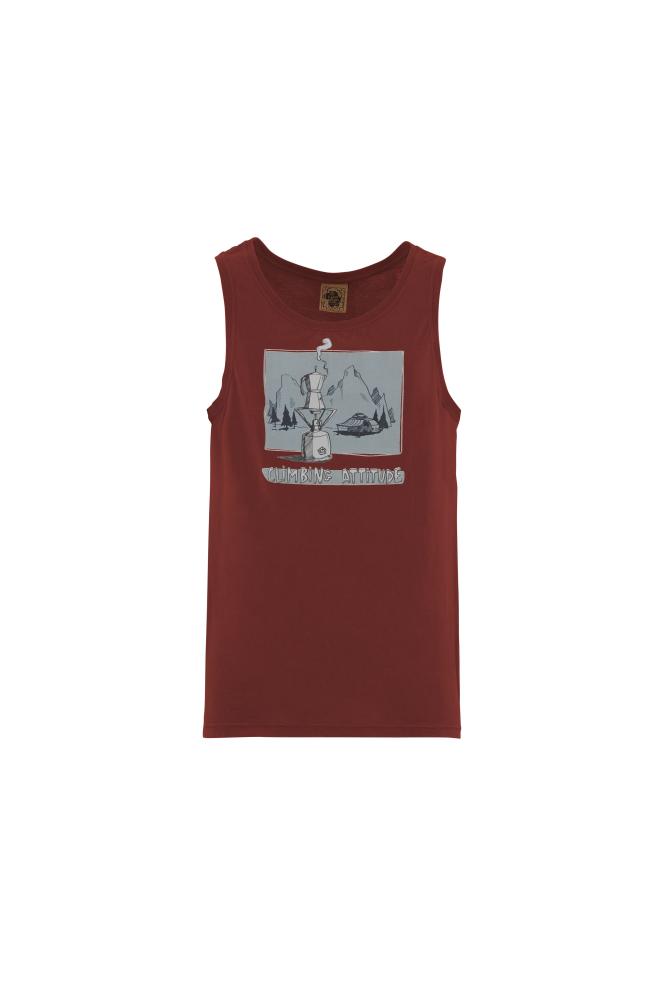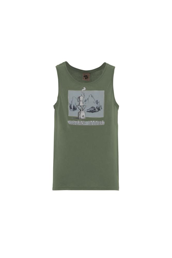 Moderné pánske tielko 1CAFFE SHIRT je vyrobené zo 100% organickej bavlny. Tielko má štýlovú potlač vriacej sa kávy v moka kanvici v údolí pod horami. Je vyrobené 100% v Taliansku s minimálnym znečistením životného prostredia a s dôrazom na extravagantné prevedenie, unikátny dizajn a komfort pri lezení.