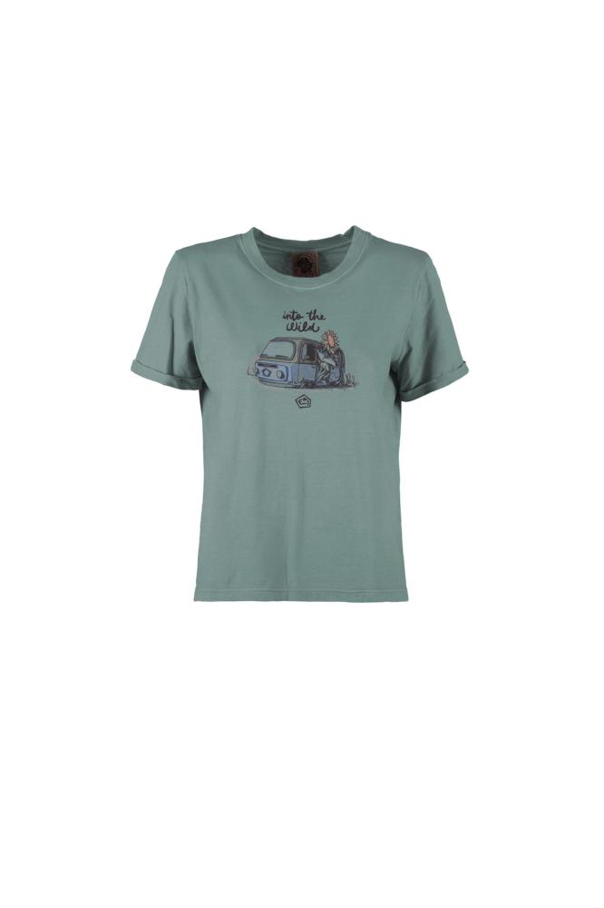 Moderné dámske tričko s krátkym rukávom WILD T-SHIRT je vyrobené zo 100% z organickej bavlny. Tričko je voľného strihu a na hrudi má štýlovú potlač, ktorá ešte podčiarkuje nápis "INTO THE WILD". Je vyrobené 100% v Taliansku s minimálnym znečistením životného prostredia as dôrazom na extravagantné prevedenie, unikátny dizajn a komfort pri lezení.